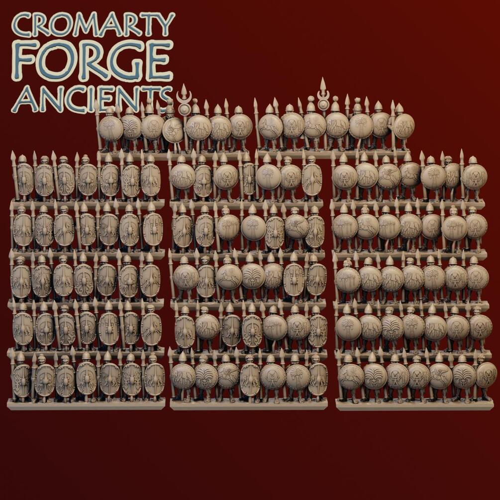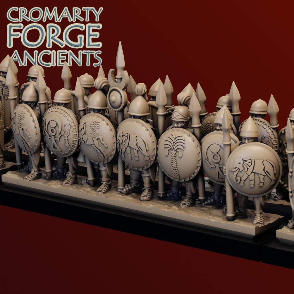 10mm Carthage Militia set includes 42 individual, and 17 strips of Carthaginian Militia armed with short spears and Asips or Scutum. 2 commanders, 2 musicians and 2 banner bearers as well as 2 command strips are included in the set.