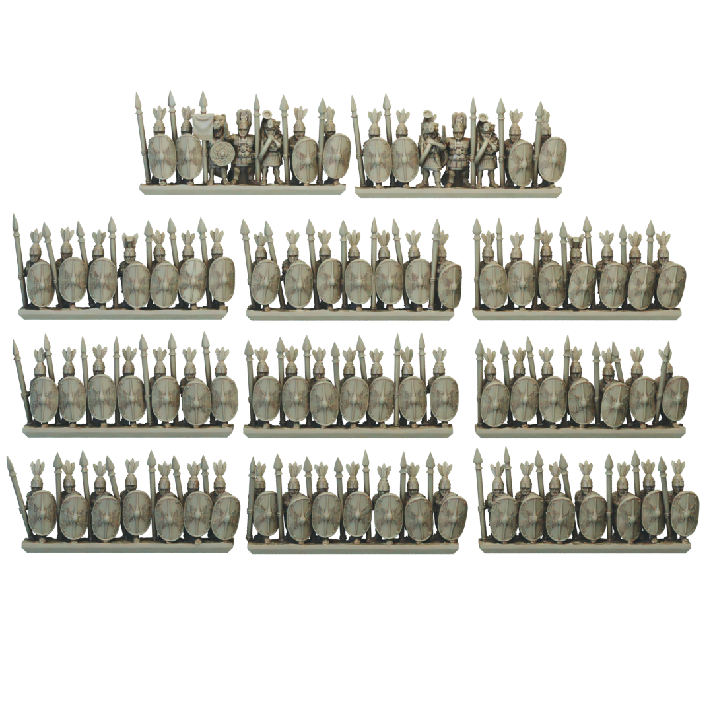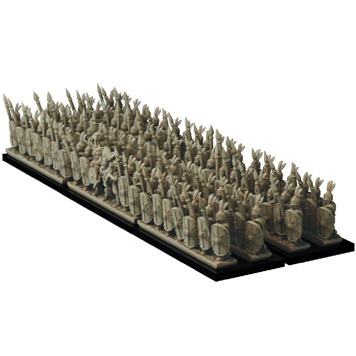 The mid republic Romans Triarii set consists of 11 strips of Triarii armed with spear (7 base strips, 2 Optio Strips and 2 centurion strips) as well as over 30 separately based sculpts. Models can be printed with one of four alternate Scutum (shield) designs, including a blank option.