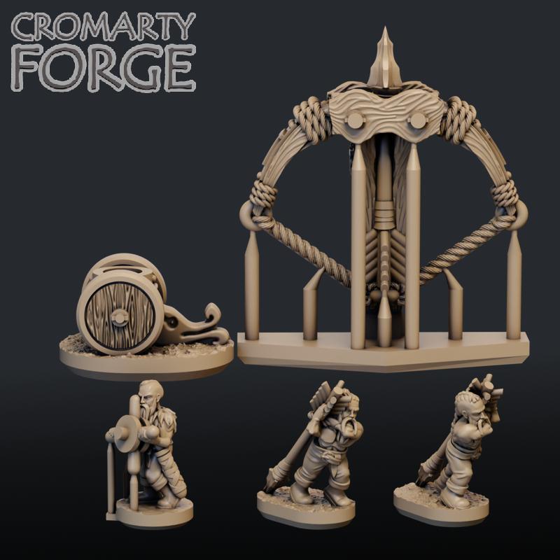 10mm Norse 10mm Norse Bolt Thrower set contains files to print Norse 10mm Norse Bolt Throwers. The set contains the upper and lower parts of the bolt thrower, as well as three crew.