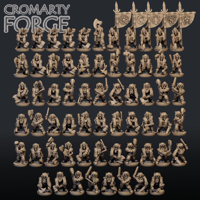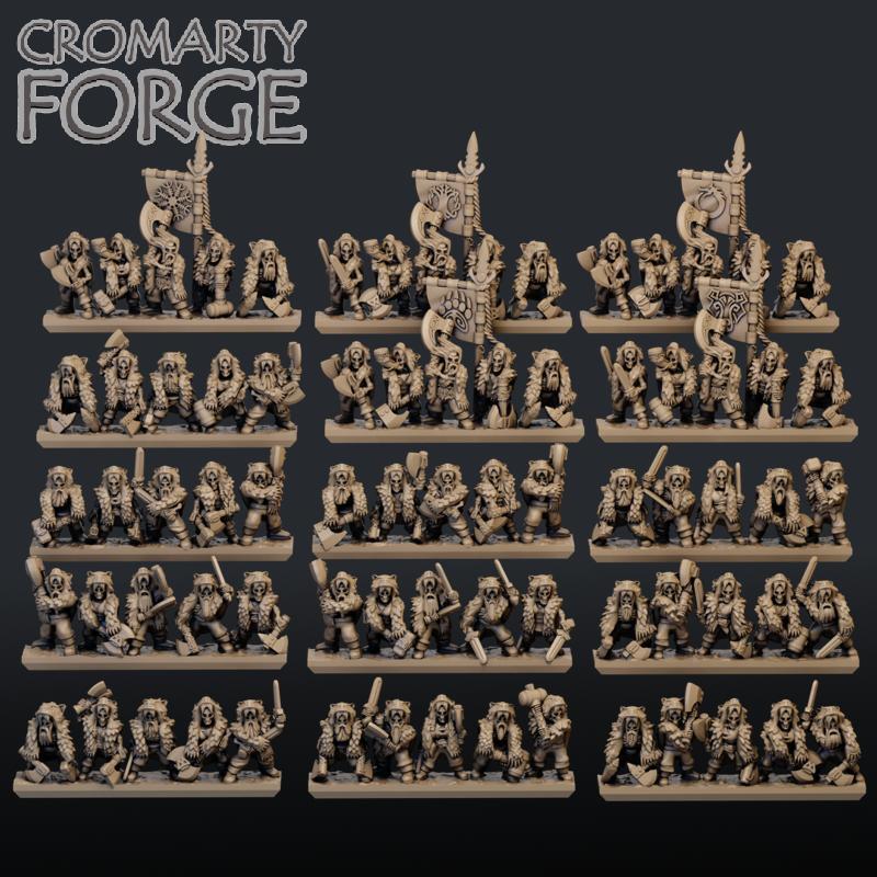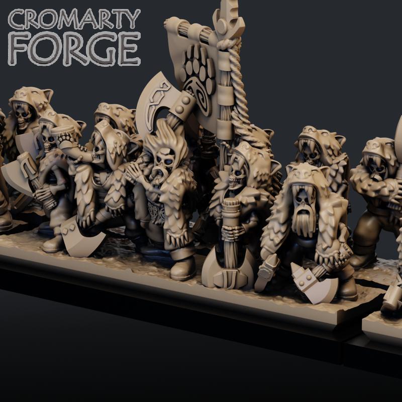 10mm Undead Norse Berserkers set contains files to print undead norse berserkers in strip and separated format. There are 10 strip sculpts and a banner strip with 5 alternate icons, and over 45 individual berserkers. The berserkers are led by Odr, the god of divine madness.
