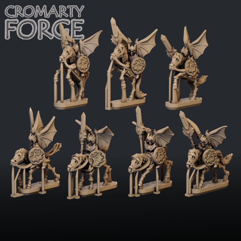 10mm Undead Norse Valkyries set contains files to print 7 Dark Valkyrie sculpts.