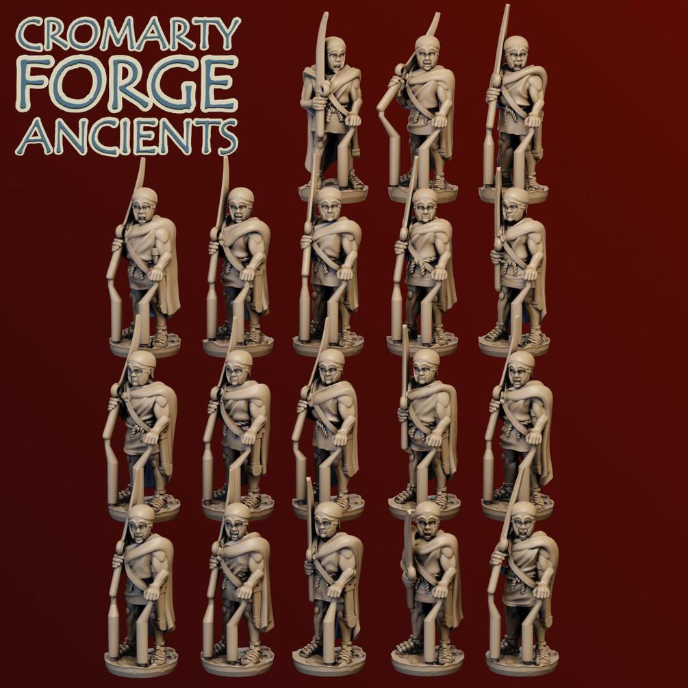 15mm Thracian : Rhomphaia set contains files to print 16 Thracians armed with Rhomphaia with and without cloaks, with four shield options. The set also comes 3 x 13.5mm strip options and 2 strip command options designed to fit on 60mm wide bases. Separate commanders can be found only in the command set.