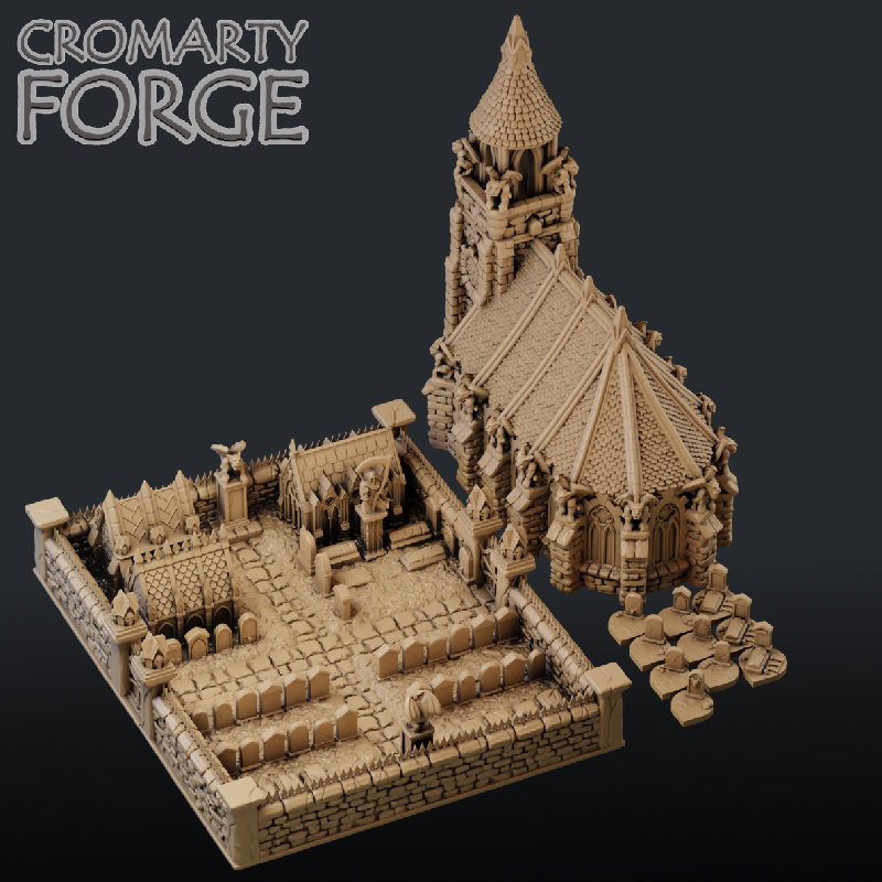 This set of stl files contains what you would need to print a church, graveyard and set of wound counters for 10mm war-games.