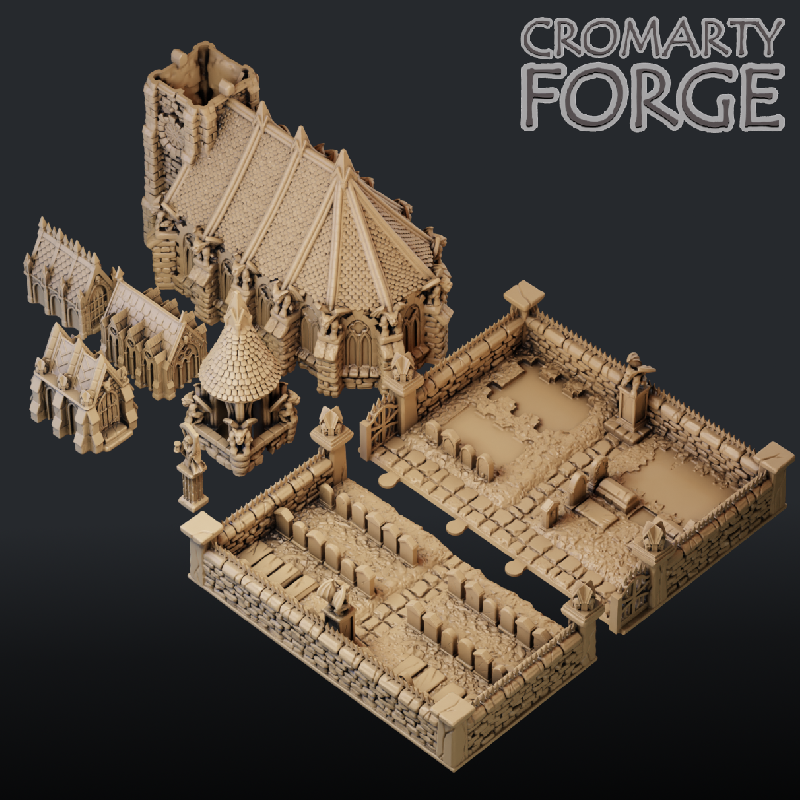 Scenery 10mm: Church and Graveyard (for Resin Printing)