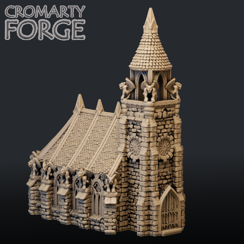 The Church comes in two parts - the body and spire - for quicker printing and to fit on most printers (largest part X:103mm - Y:56mm - Z:65mm) A file with the spire nested inside the body is provided so that the building can be printed in one print run. The Church is approximately 100mm x 55mm x 110mm when assembled.