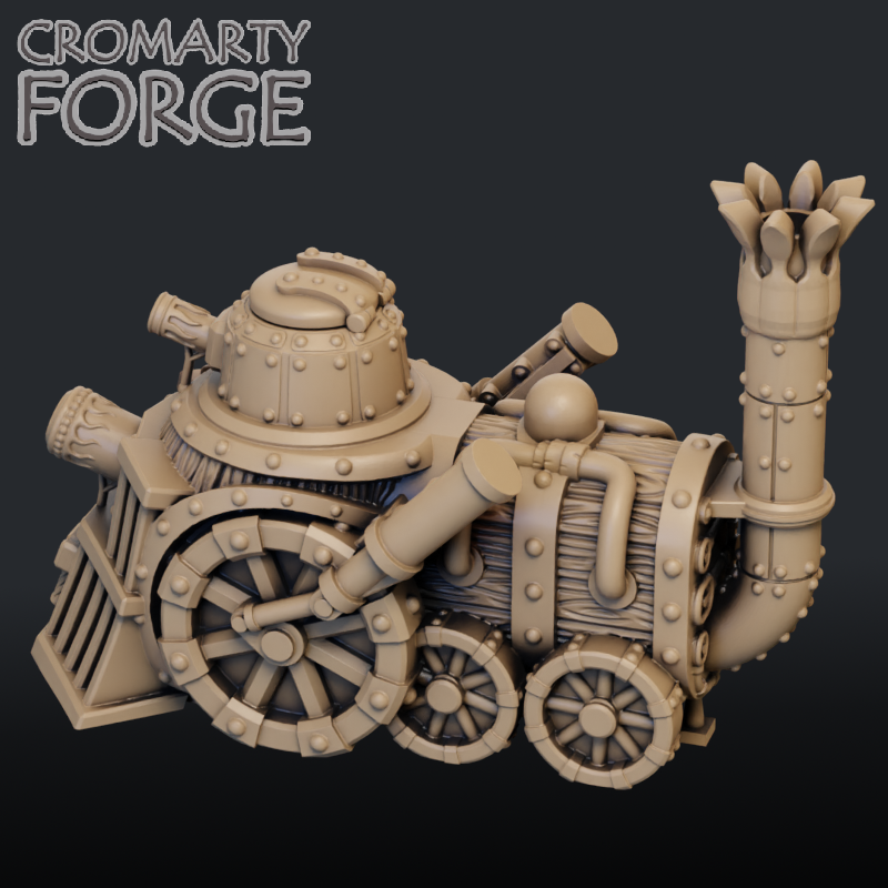 The 10mm City Dwarf Tank set contains files to print a city Dwarf tank with three alternative turrets (Closed hatch, City Dwarf tank commander, Male city Dwarf tank commander).