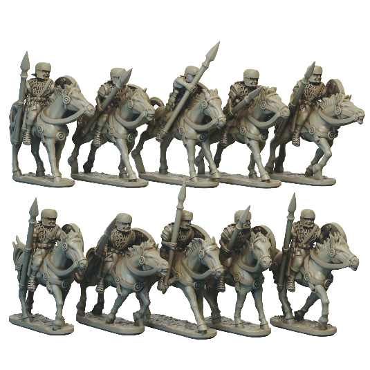 The Imperial Romans Auxiliary Cavalry set consists of 10 Auxiliary Cavalry armed with Spear, Gladius and Oval Shields. Six alternate shield designs are available, including a Blank version.