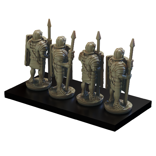 The Imperial Romans Legionary set consists of 16 Roman Legionaries armed with Pila, Gladius and separate scutum (shield). 9 alternate shield designs are available, including a Blank version.