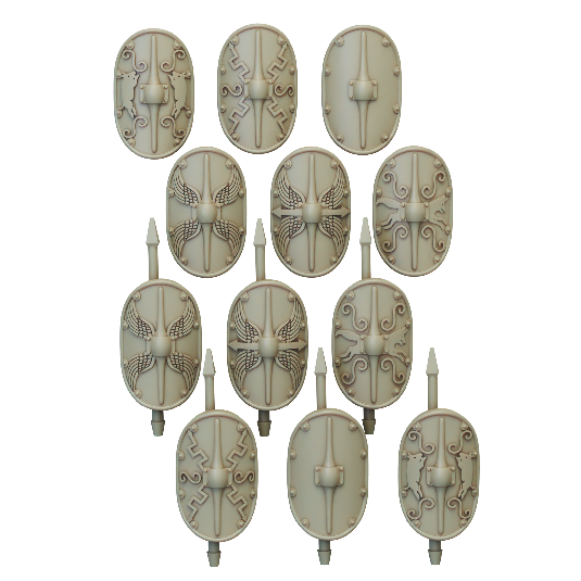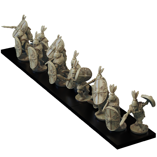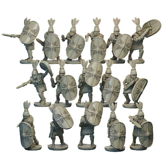 The mid republic Romans Principes Attack set consists of 16 Principe attacking with Gladius. Supplied with files for 12 different scutum: 5 designs and a blank, with and without imbedded Pilum.