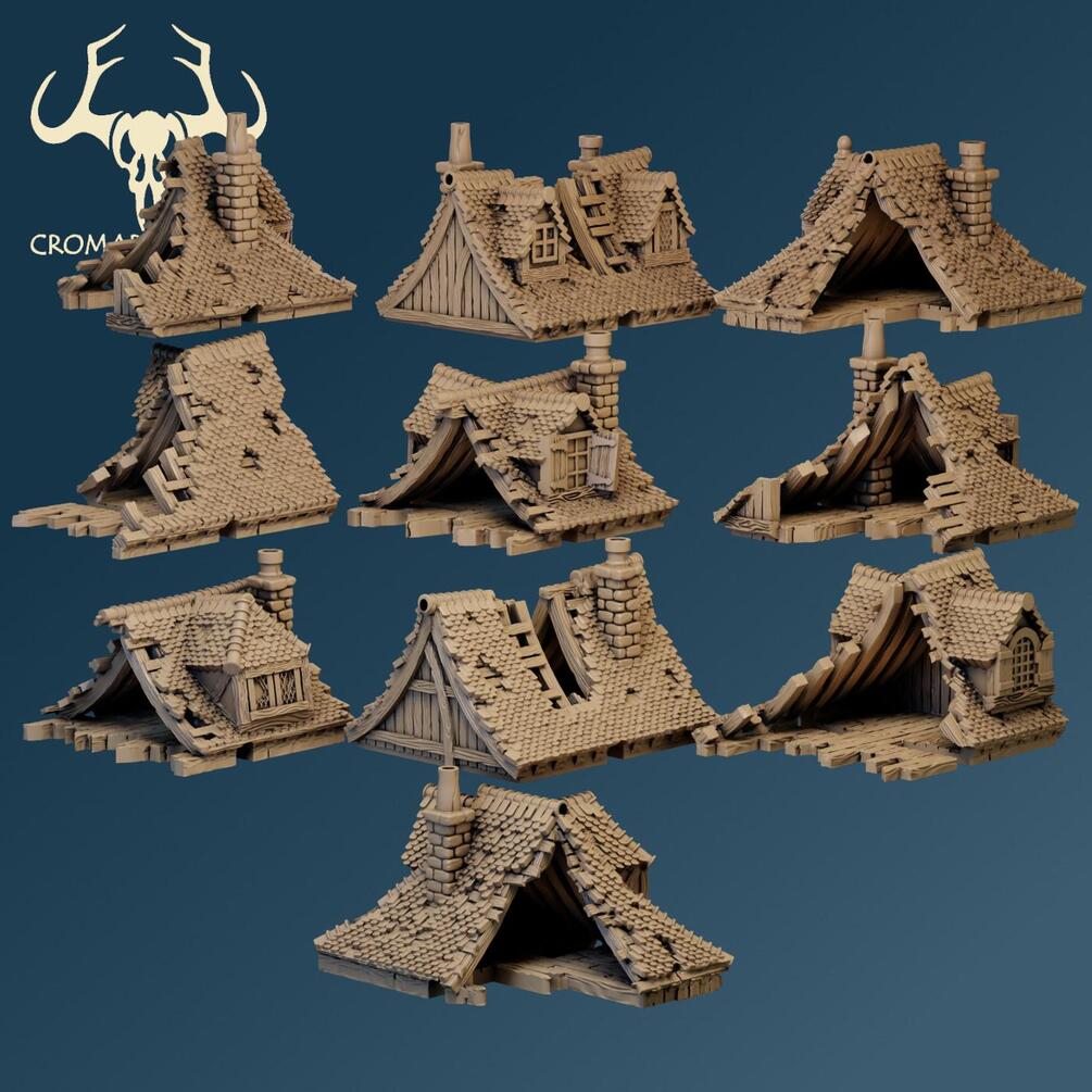 25 Roofs - Including 10 sculpted with damage and 5 smaller roofs designed to go directly onto the base sections.