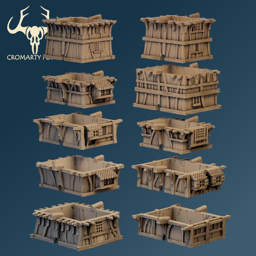 17 Mid sections - Wattle and Daub - including 7 sculpted with damage.