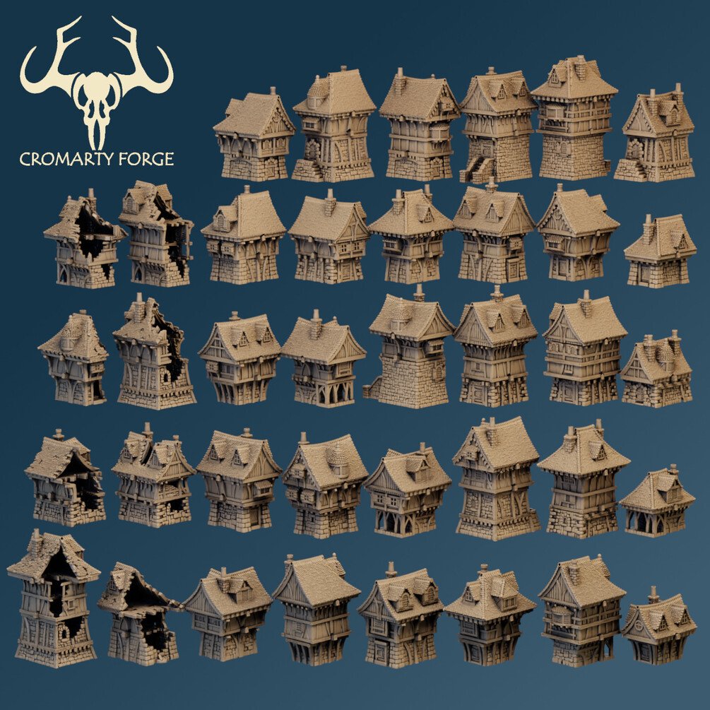 Scenery 10mm: Plethora of houses! (designed for Resin Printing)