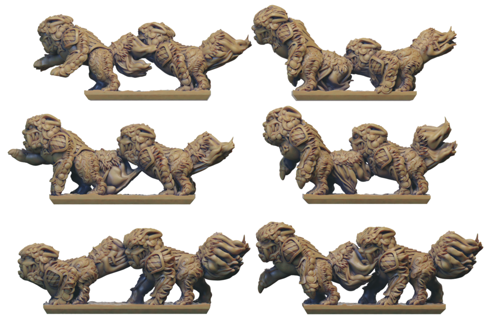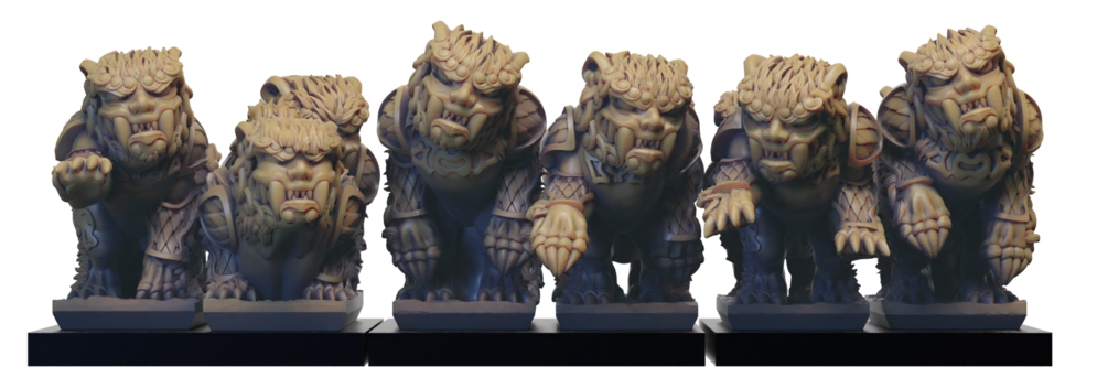 The Komainu temple guardians are an expansion to the Ratmen army for use with the experimental Nippon list for WM revelation.  This set contains 6 sets of two Komainu temple guard mounted on strips as well as 12 individual komainu. This set contains both supported and unsupported versions of the files. The supported versions of these files are intend to be printed flat on the print head of a resin 3D printer. However, every machine has its own unique requirements so please ensure you are happy with the files before you print.