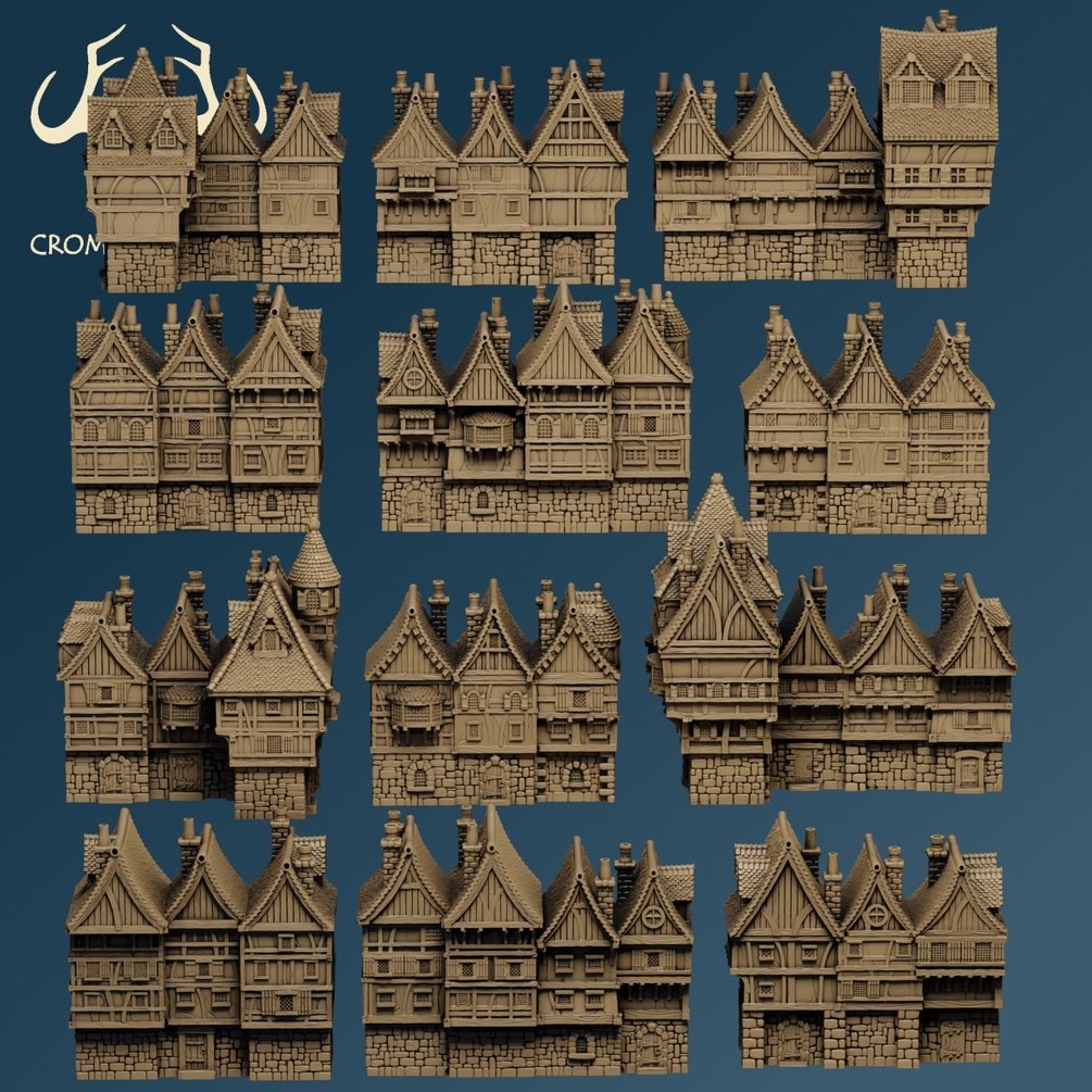 The city streets set takes your built up areas to a new level. The set contains 6 city street bases, 6 mid sections and 6 roofs. In addition, each street section has a mirror image sculpt with different windows, doors and roof furniture – giving you 12 unique streets.