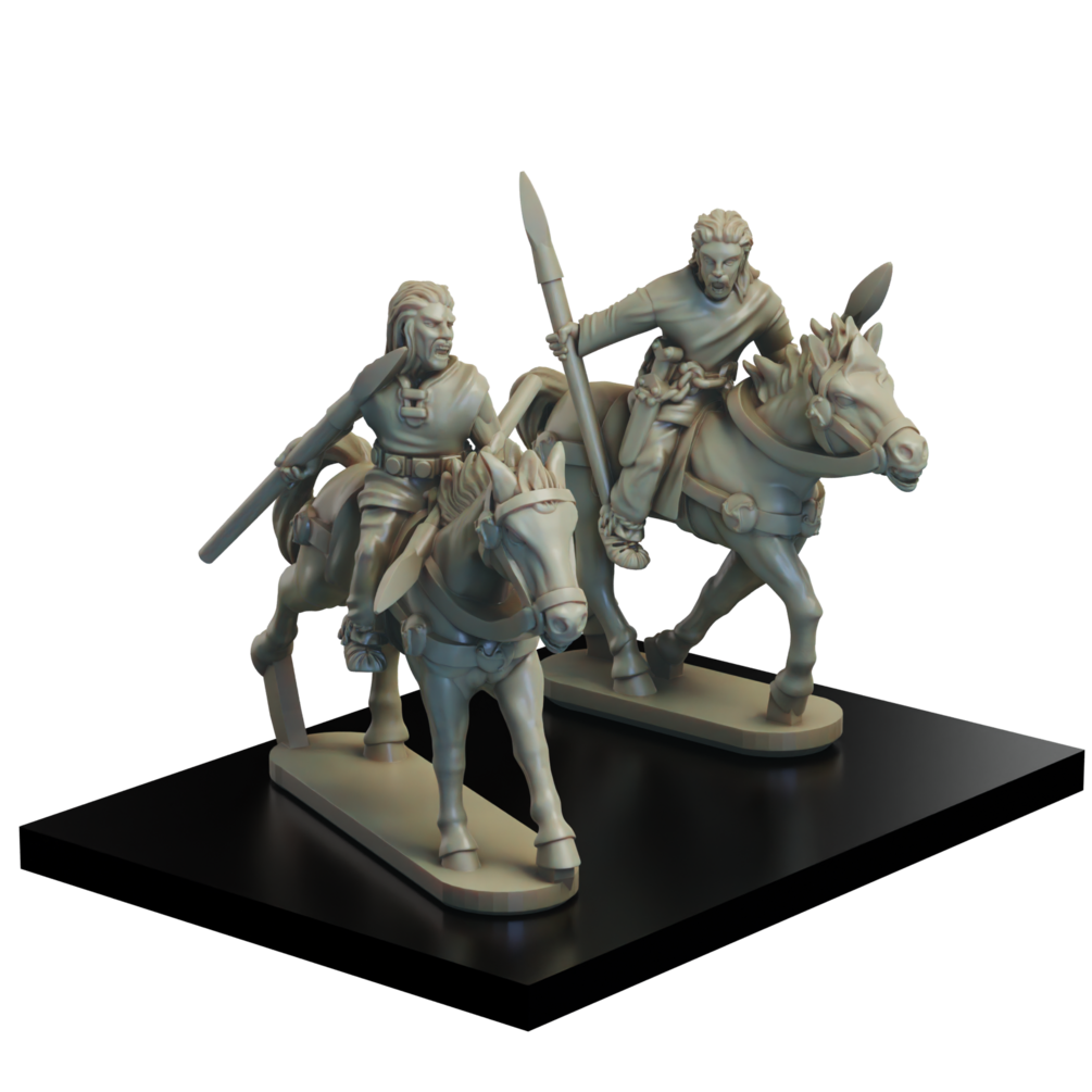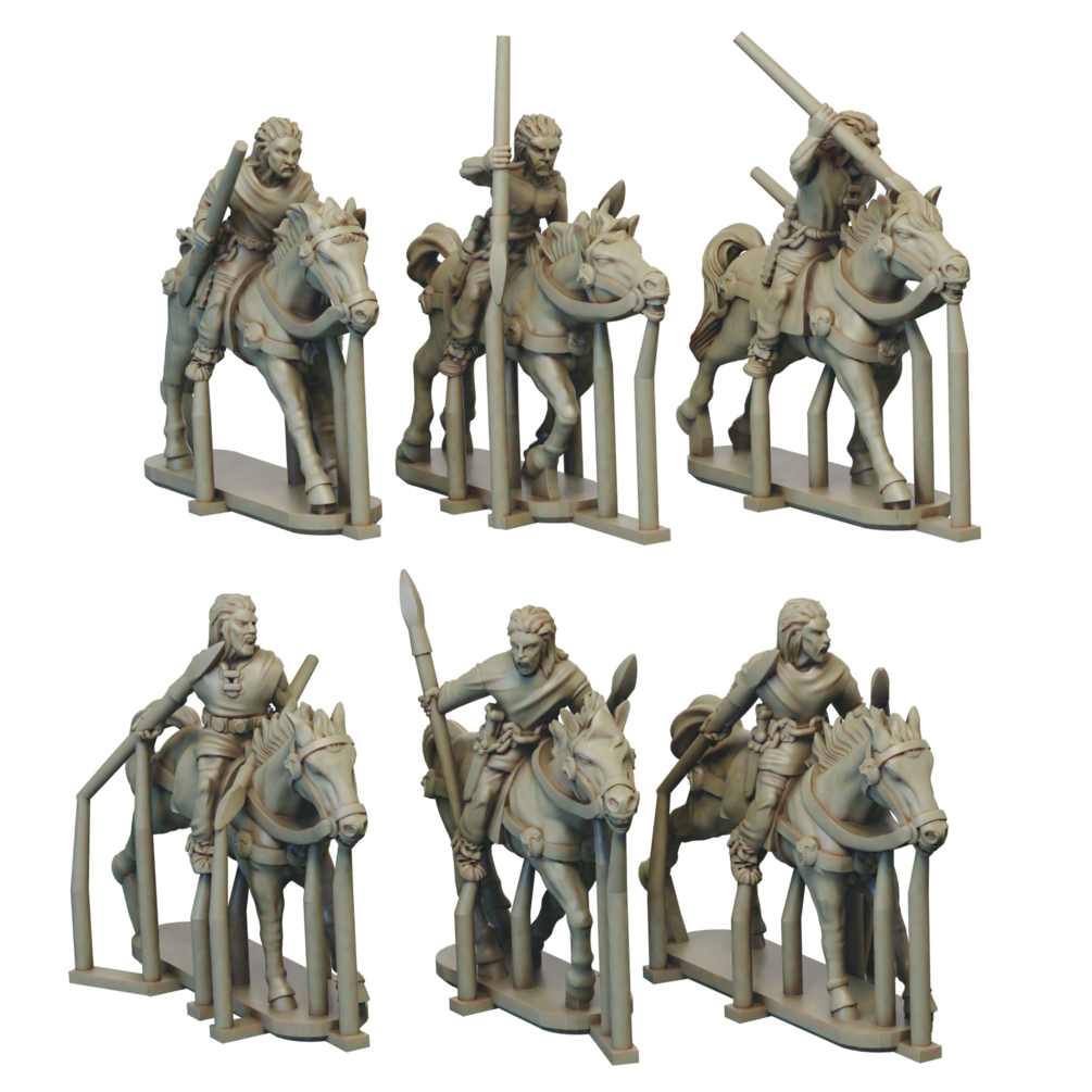 The 15mm Gallic mounted skirmishers set contains stl files for 6 mounted skirmishers.