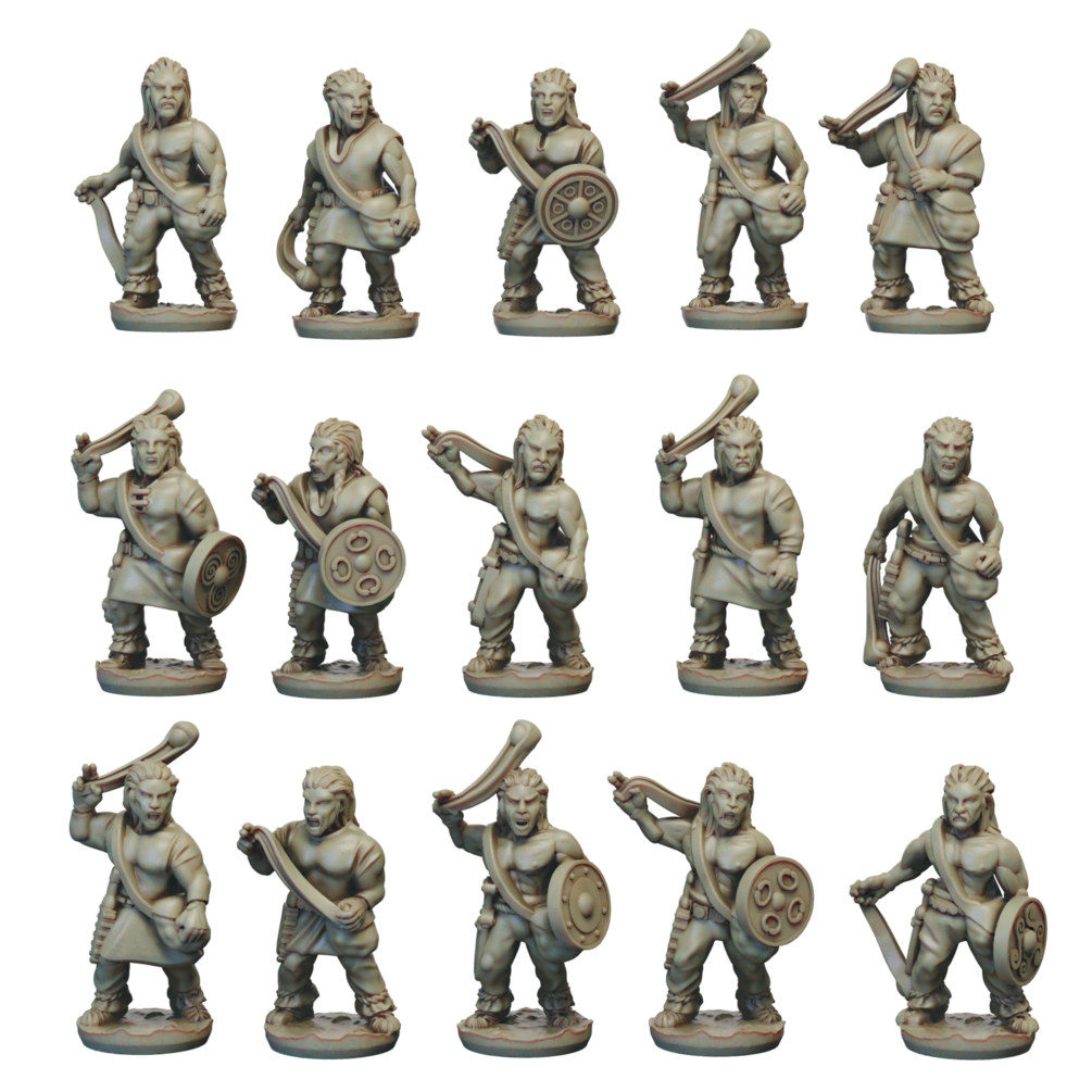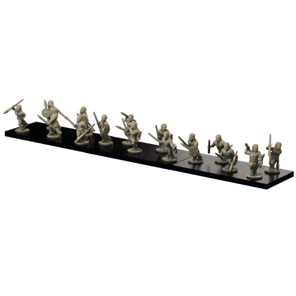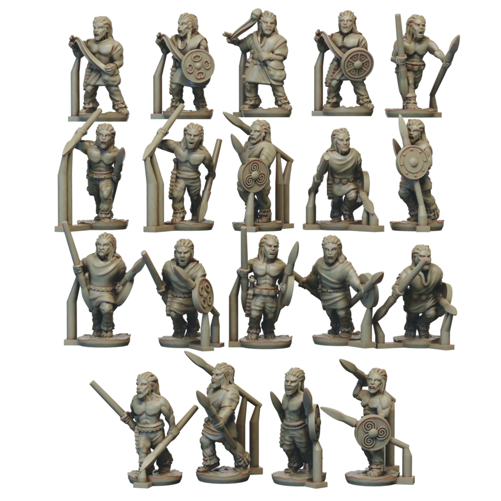 The Gallic Skirmisher set contains stl files for 15 skirmishers with Javelins and 15 skirmishers with Slings.